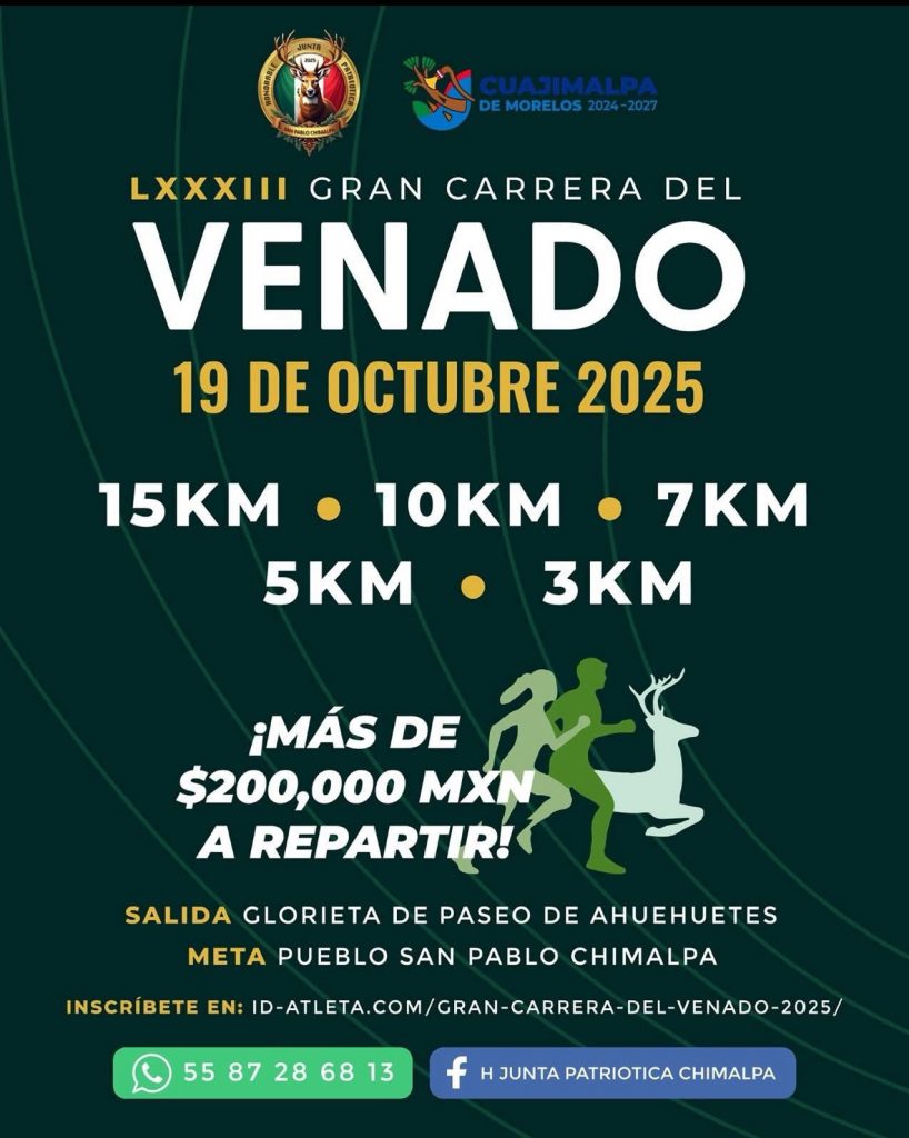 Con una bolsa de casi 200 mil pesos para los concursantes, el gobierno de Cuajimalpa presentó la LXXXIII Carrera del Venado, que se llevará a cabo el 19 de octubre y que tendrá diversas categorías, además de estar abierta para todo el público.